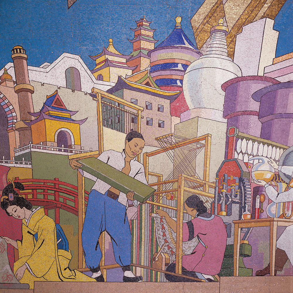 隨著英國統治時期首都遷離了加爾各答,我們於1912年開設了月光市集分行。一位員工憶述當年的特殊環境時說:「猴子會從窗戶鑽進來,撕破重要的文件,我們必須驅趕牠們。另外,還有一隻獴(貓鼬)經常從保險庫出來玩耍。」月光集市分行于1912年在德里开业,就在英国殖民统治者将印度首都从加尔各答迁回德里之后。 一位工作人员回忆起当时遭遇的一些不寻常的危险: “我们必须赶走那些可能从窗户钻进来的猴子,它们会撕碎珍贵的文件。 还有一只獴,它经常从保险库那边跑过来玩。”La filial de Chandni Chowk había abierto en Delhi en 1912 tras el cambio de lugar de la capital, que antes era Calcuta, durante el dominio británico. Un empleado recordaba los peligros inusuales a los que se enfrentaban ahí: "Teníamos que ahuyentar a los monos que entraban por las ventanas y rompían documentos valiosos. También había una mangosta que subía a jugar desde la bóveda de seguridad."La succursale de Chandni Chowk ouvre ses portes à Delhi en 1912, à la suite du transfert de la capitale indienne de Calcutta à Delhi pendant la domination britannique. Un membre du personnel se souvient des risques inhabituels auxquels il était alors confronté : « Nous devions chasser les singes qui entraient par les fenêtres et déchiraient les précieux documents. Il y avait aussi une mangouste qui venait jouer dans la chambre forte. »The tesserae were crafted to meet precise colour specifications and then adhered to the drawings using a specialised glue. The design was then cut into small sections and numbered. The sections were packed and shipped to Hong Kong, ready to be reassembled on site.